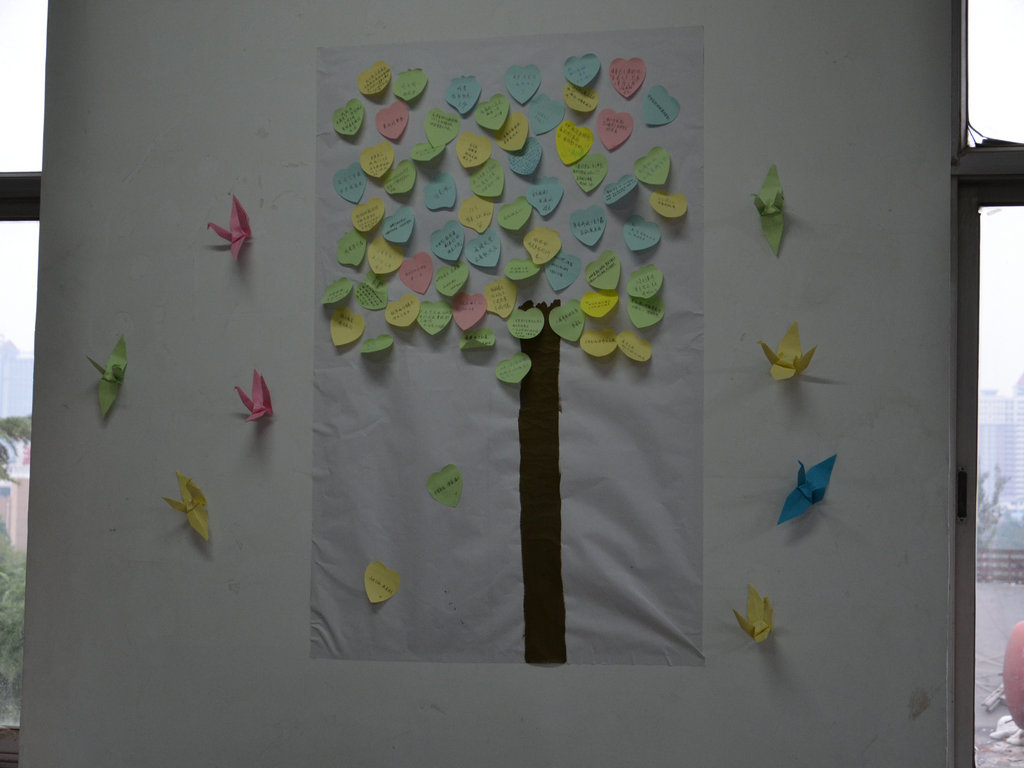 此次活动主要在奎文校区34个新生班展开。各班同学积极参加,巧妙构思、精心设计,用画笔来表达对祖国的热爱和无比赞美之情,用双手把教室布置得洁净、温馨、悦目。9月27日下午,团总支对各班进行了检查评比,分设一等奖两个,二等奖四个,三等奖六个,并对获奖班级颁发了奖状。(郭芳供稿)