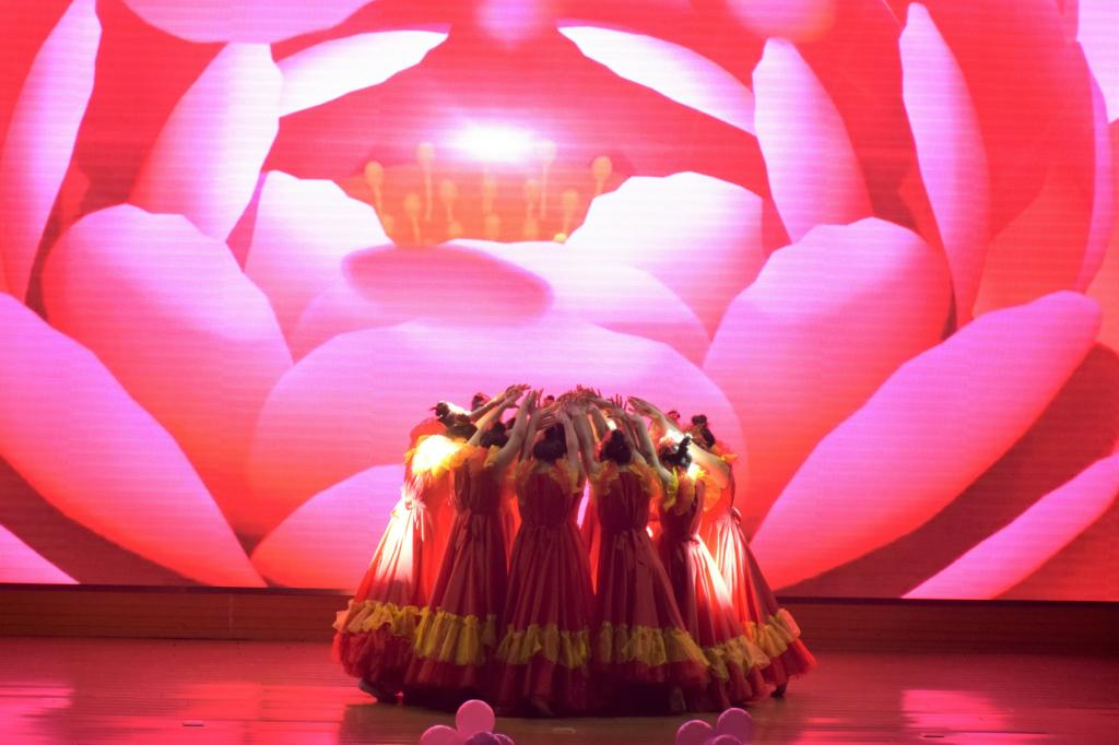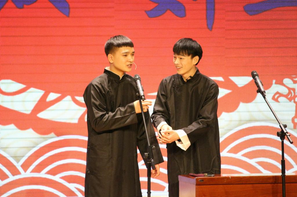 整场演出融歌舞、小品、器乐合奏、情景剧等多种形式于一体,青春四溢,精彩纷呈。热情洋溢的开场舞《盛世花开》带着对祖国的热爱、对新时代的赞颂拉开了晚会的序幕,将现场气氛迅速点燃。萨克斯伴舞《走过咖啡屋》、吉他弹唱《春风十里》新颖别致,独具一格,给观众们带来不一样的感受,充分展示了同学们的艺术风采。根据军训学习内容编排的《擒敌拳》表演、跆拳道·武术表演《跆屿》整齐划一的拳脚、刚健有力的动作,虎虎生威,将青年学子们的精、气、神展现的淋漓尽致。由师生们共同表演的《秀·中华美》、《服装走秀》将传统文化精粹与现代艺术完美结合。爵士舞《Not Today》活泼带感、跳出了青春动感和生命的色彩。小品《中奖了》、《感恩》以小见大,给观众带来欢乐的同时具有深刻的教育意义。情景剧《父亲》表达了中华传统美德中“尽孝要提早”的道理。最后,晚会在高亢激昂的《祝福祖国》的歌声中圆满结束。