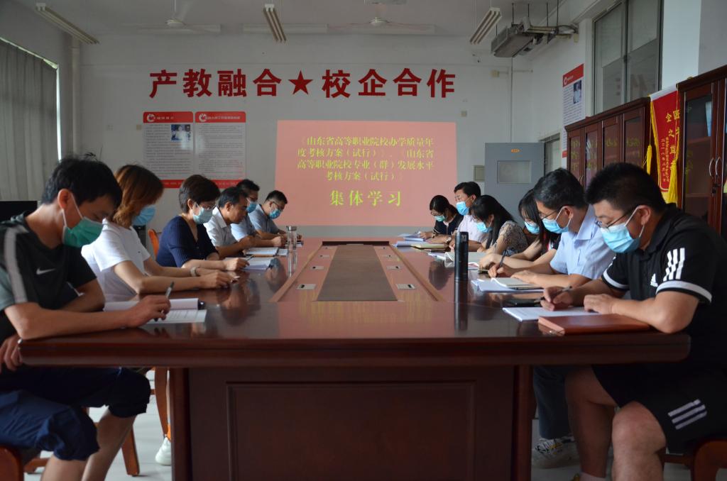 7月9日下午,为进一步更新办学理念,明确工作思路,永利y23455组织副科级以上干部召开研讨会,集中学习《山东省高等职业院校办学质量年度考核方案(试行)》和《山东省高等职业院校专业(群)发展水平考核方案(试行)》两个文件,并结合部门实际情况进行研讨。