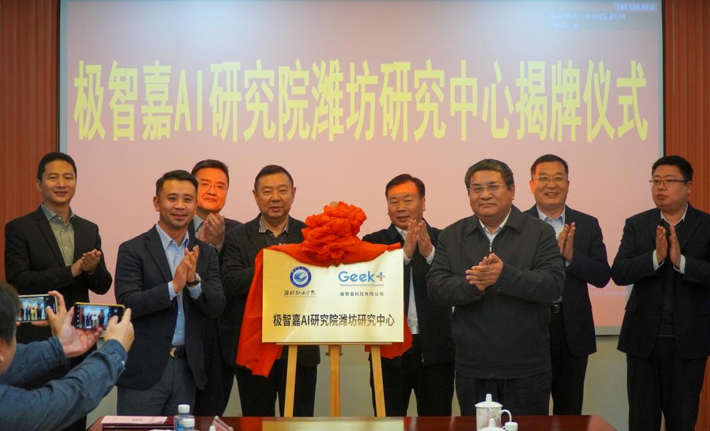 随后,举行了学院发展顾问和兼职教授聘任仪式。王家爱为任豪祥、谭文哲颁发了聘书。聘任任豪祥副会长为学院发展顾问,聘任谭文哲为兼职教授。王家爱和刘征共同为极智嘉AI研究院潍坊研究中心揭牌。