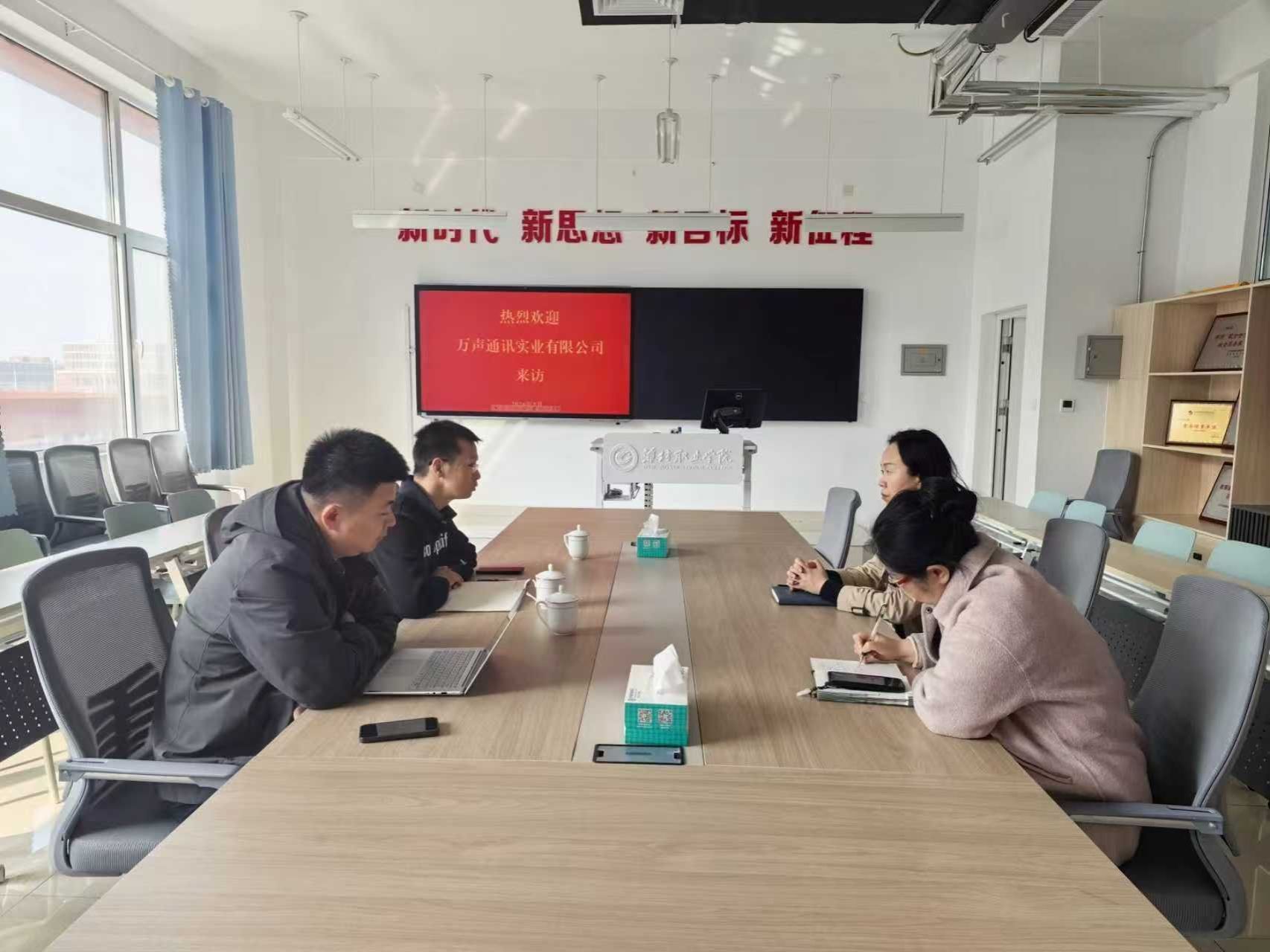 3月20日上午,万声通讯实业有限公司负责人一行来到永利y23455,围绕学生实习就业、人才定向输送等事宜开展校企合作洽谈。永利y23455主要负责同志和相关科室负责人接待来访人员。