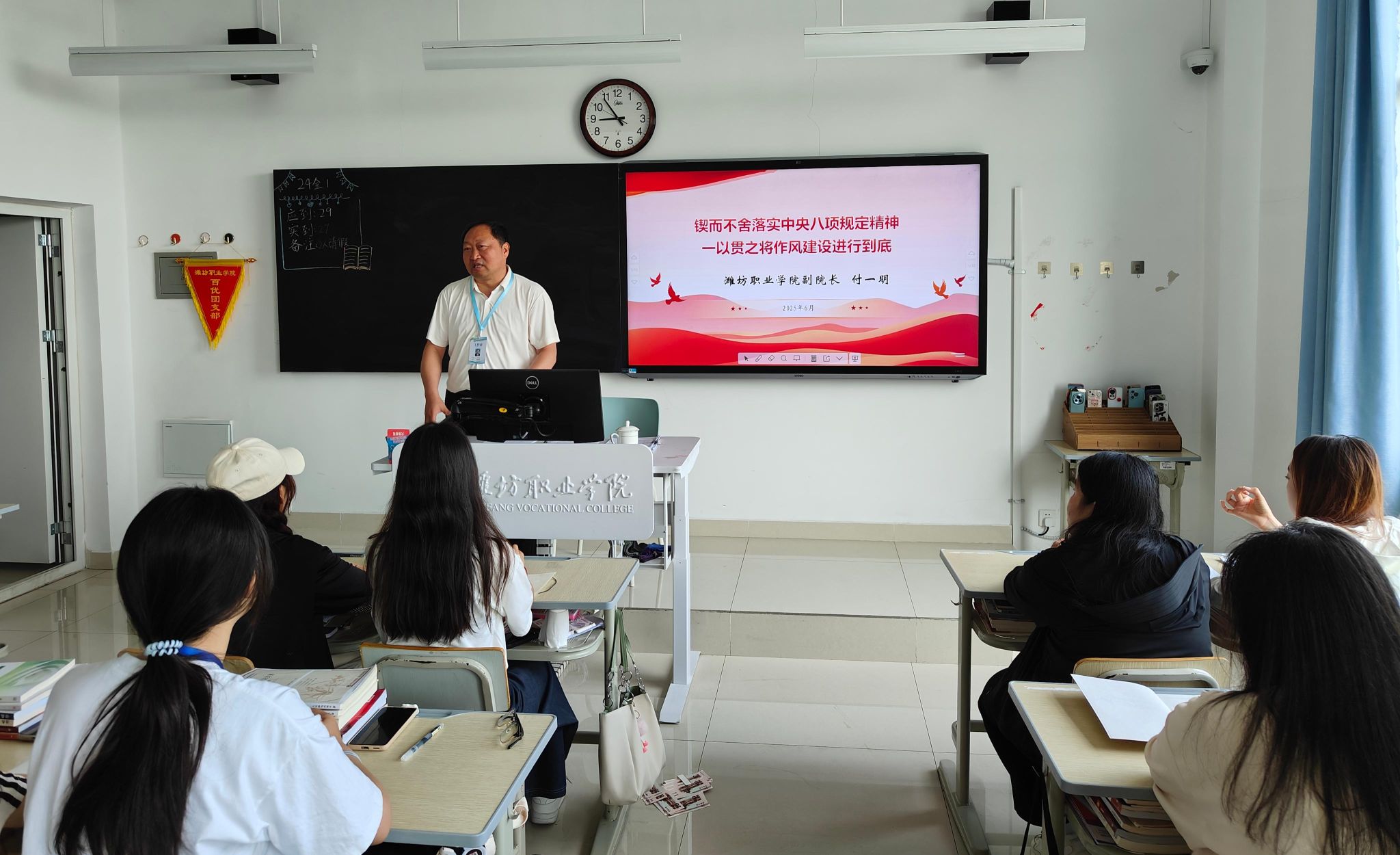 付一明同志强调,抓作风建设只有进行时、没有完成时,要求学院各级党组织和广大党员干部在学院党委的坚强领导下,锲而不舍落实中央八项规定及其实施细则精神,一以贯之将作风建设进行到底,以作风建设新成效推动保持党的先进性纯洁性、不断赢得师生信任拥护,紧紧围绕“一申一争”工作目标全力做好“五个狠抓,五个提升”,努力在服务教育强省和更好潍坊建设中勇挑重担、走在前列。(梁煜供稿)