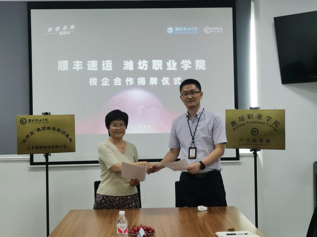 7月7日,永利y23455主要负责同志带领部分专业骨干教师到潍坊顺丰速运有限公司举行产学研基地及“双师型”教师培养培训基地签约挂牌仪式,并看望了实习学生。