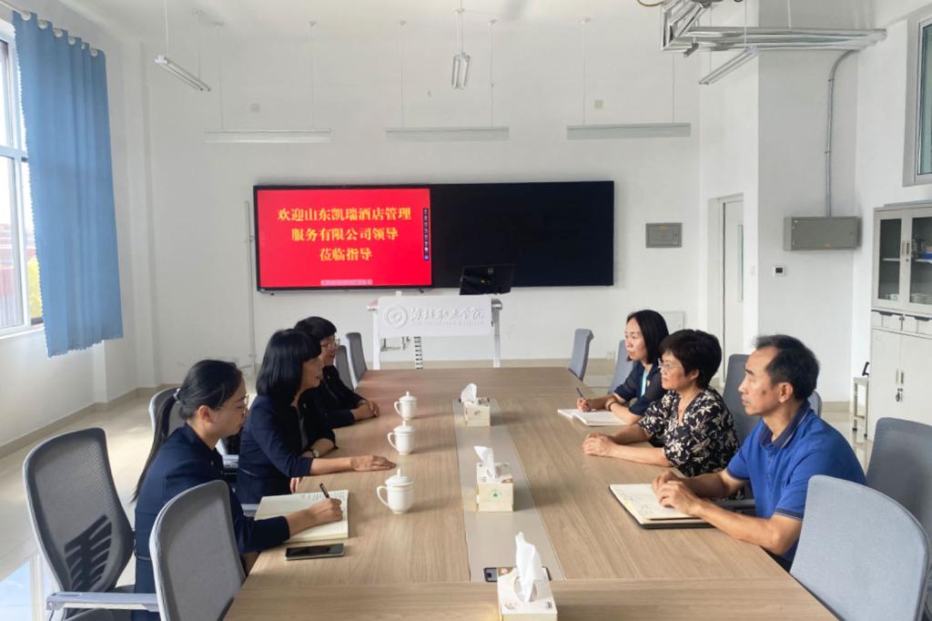9月21日上午,山东凯瑞酒店管理服务有限公司胡嘉一行3人来到永利y23455洽谈校企合作,永利y23455主要负责同志接待了到访人员。