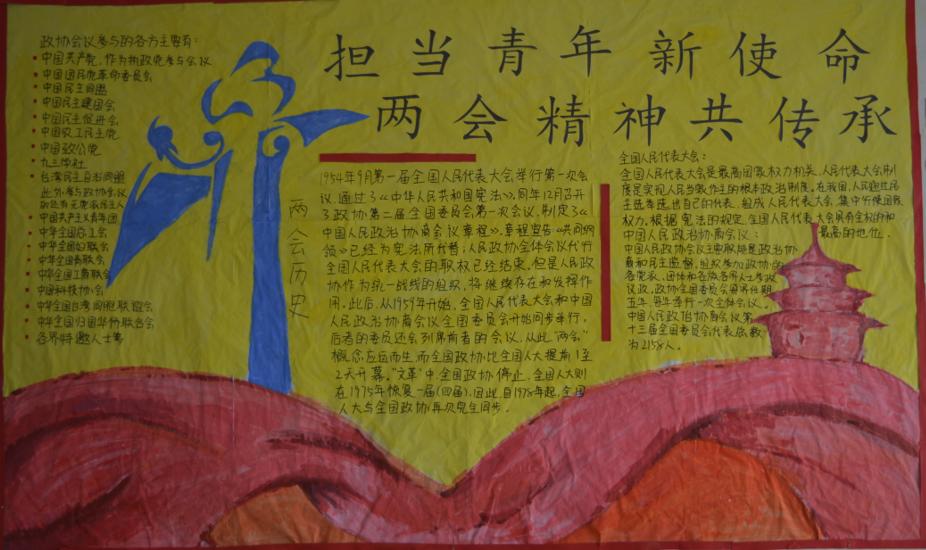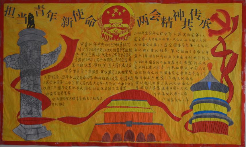 为进一步促进学生学习两会精神,关心国家时事,了解国家动态,3月19日,永利y23455开展“担当青年新使命,两会精神共传承”墙报评比活动。
