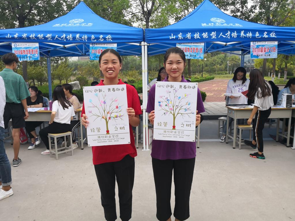 在迎新生活动中,永利y23455组织了以“以心迎新,青春印记”为主题的欢迎新生活动,邀请2018级新生在“经管之树”上按下手印,每位同学的手印就如同一片树叶,整棵大树欣欣向荣,同学们在按下手印的同时也许下一份期许,活动既调动了新生们参与的积极性,又培养了集体的团队意识,意义深远。顺利召开2018级新生第一次班会,班主任向各位同学简要介绍了学校概况,并宣扬了永利y23455学生管理的理念,“爱是体现在严之中”,只有进行严格的管理,才是对学生长远发展的负责,同学们也对此表示深深地理解与配合。第三,开展了新生老生“一对一”帮扶活动,活动主要由学长学姐向新生讲解在潍职的大学生活,介绍学院教学、公寓的相关要求和秩序,传授了自身的生活和学习经验,加强了新老生之间的情感联系。