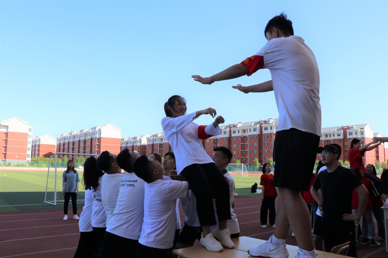 在“开营破冰”环节,同学们通过自我介绍和队长述职演讲增强了对彼此的了解,形成了团队氛围,同时也确定了自己的队名、队旗、和口号。活动中通过“勇于承担责任”“进化论”等游戏锻炼了大家承担责任的勇气,达到了克服心理障碍提升心理承受能力的目的。在行为指导关卡,大家调整心态,突破自我,先改变自己,从而为以后追求成功的道路打下坚实的心理基础。不倒森林游戏极大的考验了各组成员团结合作能力,在“翻天覆地”游戏环节同学们相互扶持,勇于直面困难,战胜困难。通过“信任背摔”环节,同学们增加了相互信任,“领袖风采之卓越圈”则是重点倾向培养大家的领袖能力。