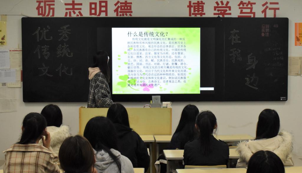 各班通过组织同学们观看优秀传统文化宣传视频,让同学们感受优秀文化魅力,带动同学们积极交流讨论,分享自己身边的优秀传统文化,讲述自己身边的故事。同学们对于如何传承我国的优秀传统文化也纷纷提出了自己的看法和建议,大家踊跃发言,立志要承担起自己的责任,认真学习,积极上进。