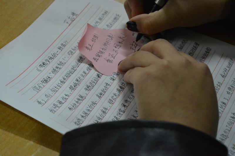 活动伊始,两班班长向班内同学讲解了本次活动的主题及内容,同学们自由结合成小组,以书信演讲、配乐诗朗诵等形式表达自己的感恩之情。同学们一声声发自肺腑的朗诵,讲述了自己与家人之间血浓于水的亲情,一句句饱含深情的吟唱,真诚地表达着对家人的感激之情。随后,宣传委员组织同学们在卡片上写下自己对家人真挚的祝福并在感恩墙上贴上自己的感恩寄言。活动最后,在班长的带领下,同学们纷纷起立共同为父母朗诵诗歌,表达内心的感激之情。