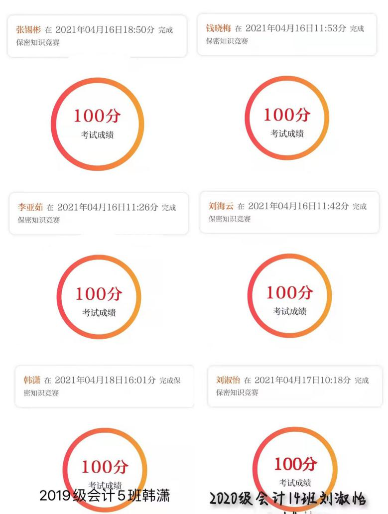 通过本次保密知识竞赛活动,学院全体学生充分认识到了保守国家秘密对国家安全的重大意义。大家纷纷表示,在日常学习生活中,从自身做起,在思想上、行动上筑牢安全保密防线,严格执行保密规定,切实保护好个人、学校、国家信息,并以保密知识竞赛优异成绩礼赞建党百年。(李婷供稿)