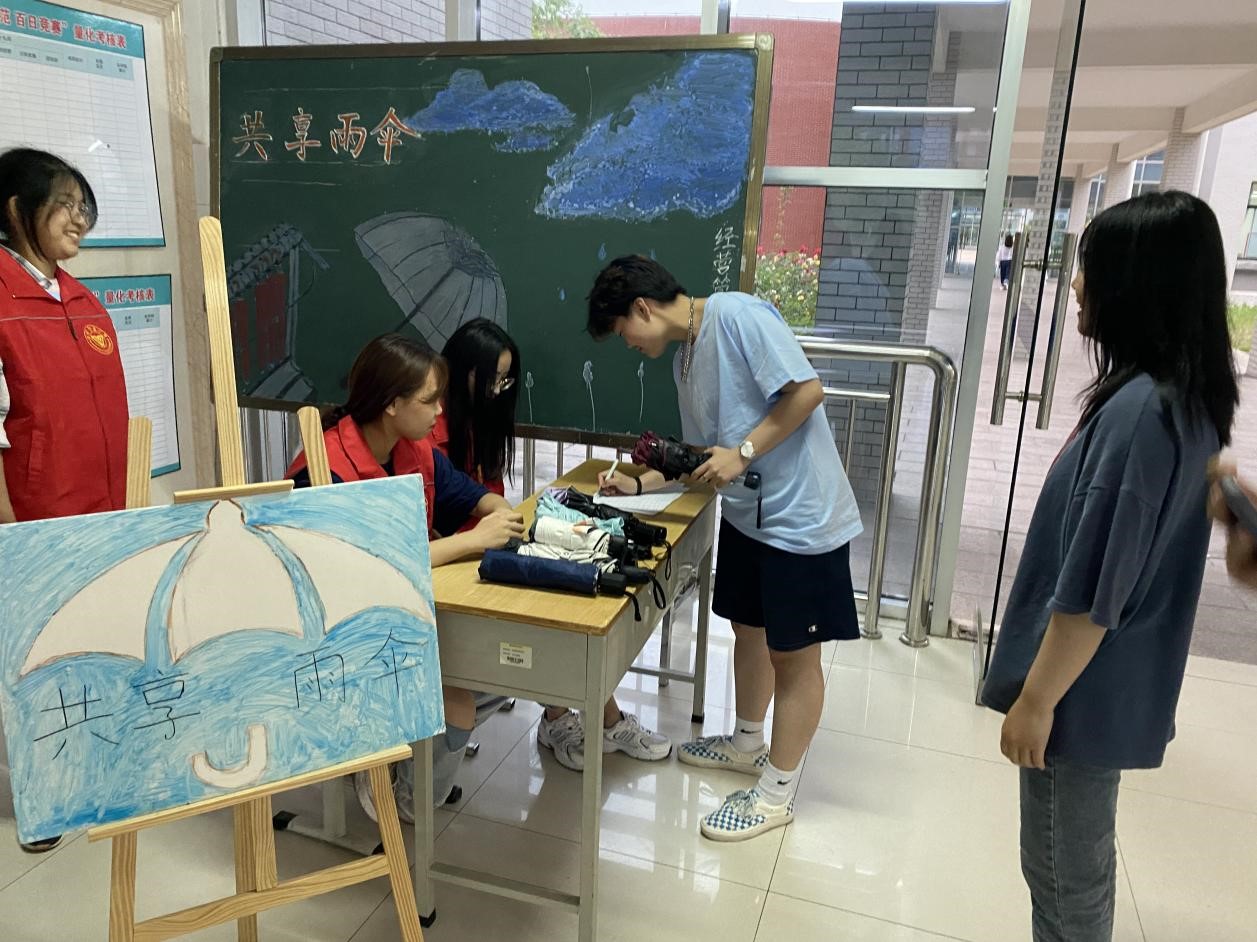 为了弘扬和践行志愿者的志愿服务、甘于奉献的精神,为给广大师生提供便利,给雨中的校园带来暖意,5月26日下午,永利y23455团总支在惠泽1号楼开展“爱心共享伞,温馨无极限”志愿服务活动。