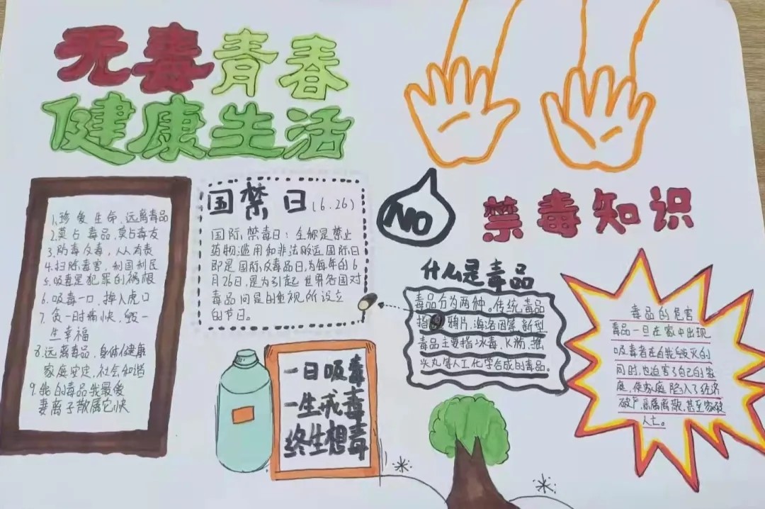 通过此次手抄报评比活动,同学们真正认识到毒品给人类身心健康带来的危害,纷纷表示一定要远离毒品,并且积极参与抵制毒品的斗争,为创建无毒校园、和谐社会而贡献自己的力量。