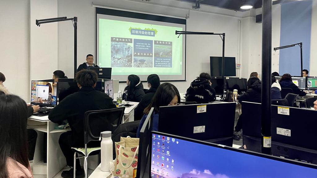 主题班会上,班主任利用视频、PPT等方式,从垃圾分类的概念、意义、现状、具体方法等方面进行介绍,让同学们充分了解垃圾分类的紧迫性与必要性,深入了解垃圾分类常识和意义,并向同学们科普垃圾分类的标准和进行垃圾分类的方法。垃圾大致可分为可回收垃圾、厨余垃圾、有害垃圾、其他垃圾四类,分别是蓝色、绿色、红色、黄色来表示。最后,班主任组织开展了识别垃圾分类的小游戏,使同学们更加深刻地认识到垃圾分类的目的是提高垃圾的资源价值和经济价值。