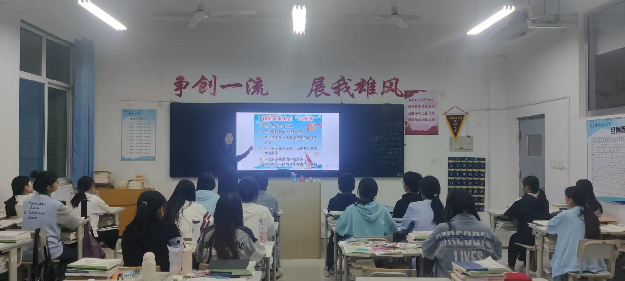 班会上,班主任通过组织学生观看防溺水专题教育视频、案例分析、交流讨论等多种形式对学生进行防溺水安全知识宣讲。班主任向同学们传达了防溺水“六不准”,介绍了基本的预防溺水方法,以及自己或他人突发溺水时应如何应对等内容,引导同学们提高安全意识,促使同学们进一步掌握相关的救生与自救知识,增强自我保护能力,让广大同学更加认识到“安全无小事,防患于未然”的道理。