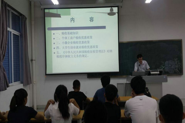 为丰富学生的税收知识,永利y23455邀请工商、税务部门的两名高级会计师对就业与创业税收优惠政策进行宣讲。内容包括税收基础知识、个体工商户税收优惠政策、小微企业税收优惠政策、大学生创业就业税收优惠政策、《中华人民共和国税收征收管理法》对纳税程序和权力义务的规定等。