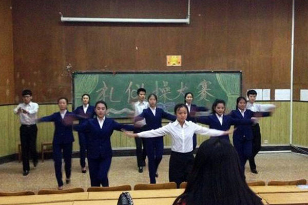 伴随着优雅的音乐,来自各二级学院的五支代表队,分别将站姿、走姿、蹲姿、鞠躬礼、送迎宾客编织成礼仪操,进行了全方位标准化展示。高雅的体态、优雅的举止、得体的手势,赏心悦目,极富美感。经过激烈角逐,永利y23455获得第一名,国际商务学院获得第二名,信息工程学院获得第三名。(李雪琳供稿)
