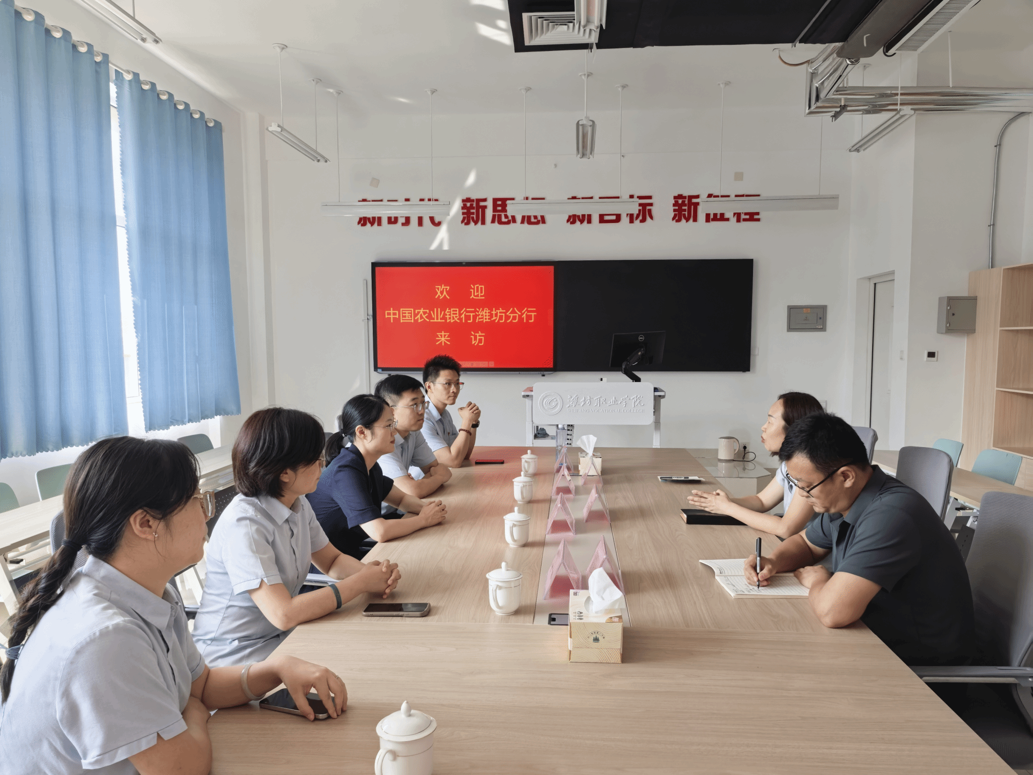 9月9日,中国农业银行潍坊分行机构业务部总经理周璇等一行5人来永利y23455考察交流,学院主要负责同志热情接待并主持座谈会。
